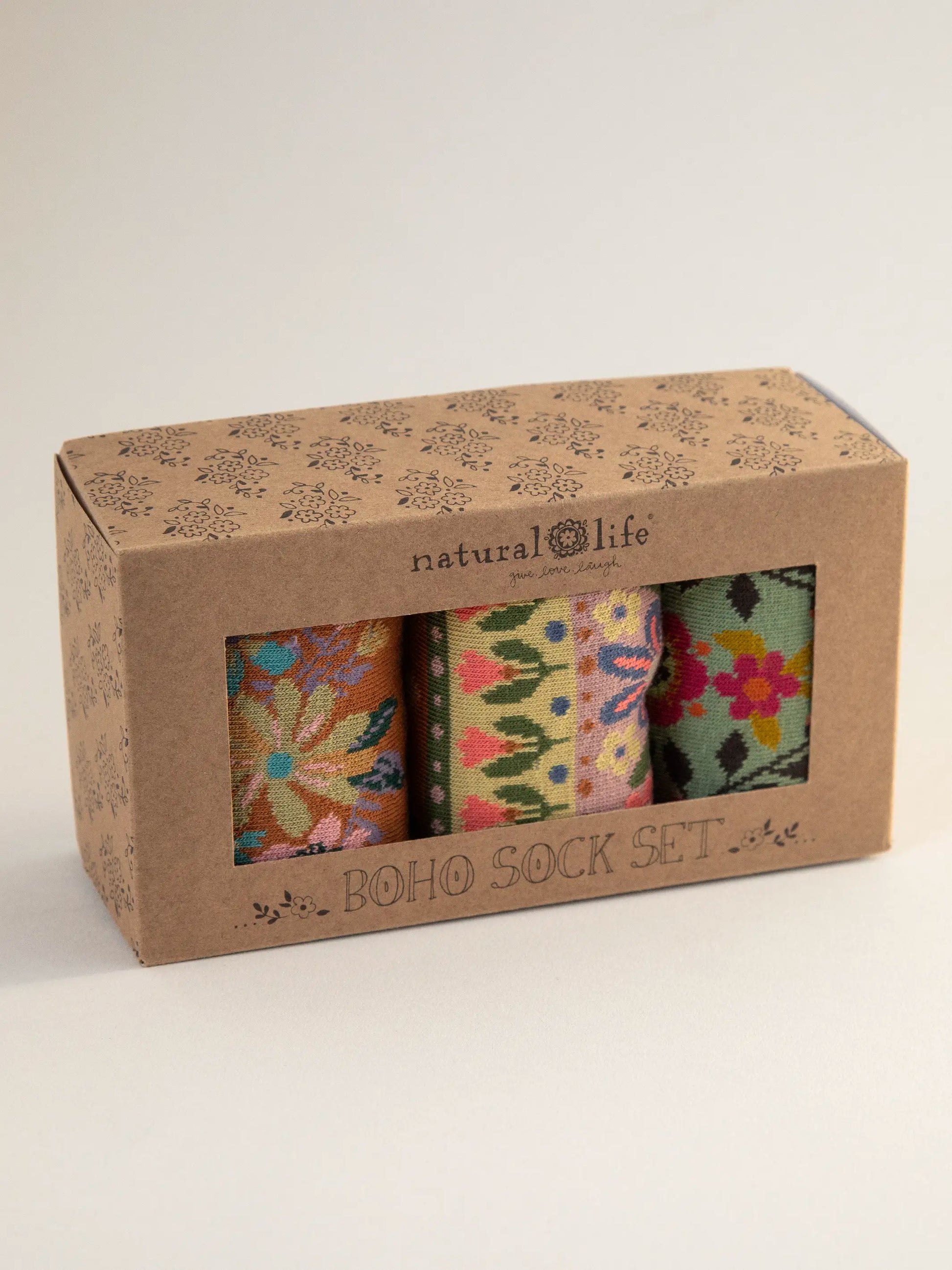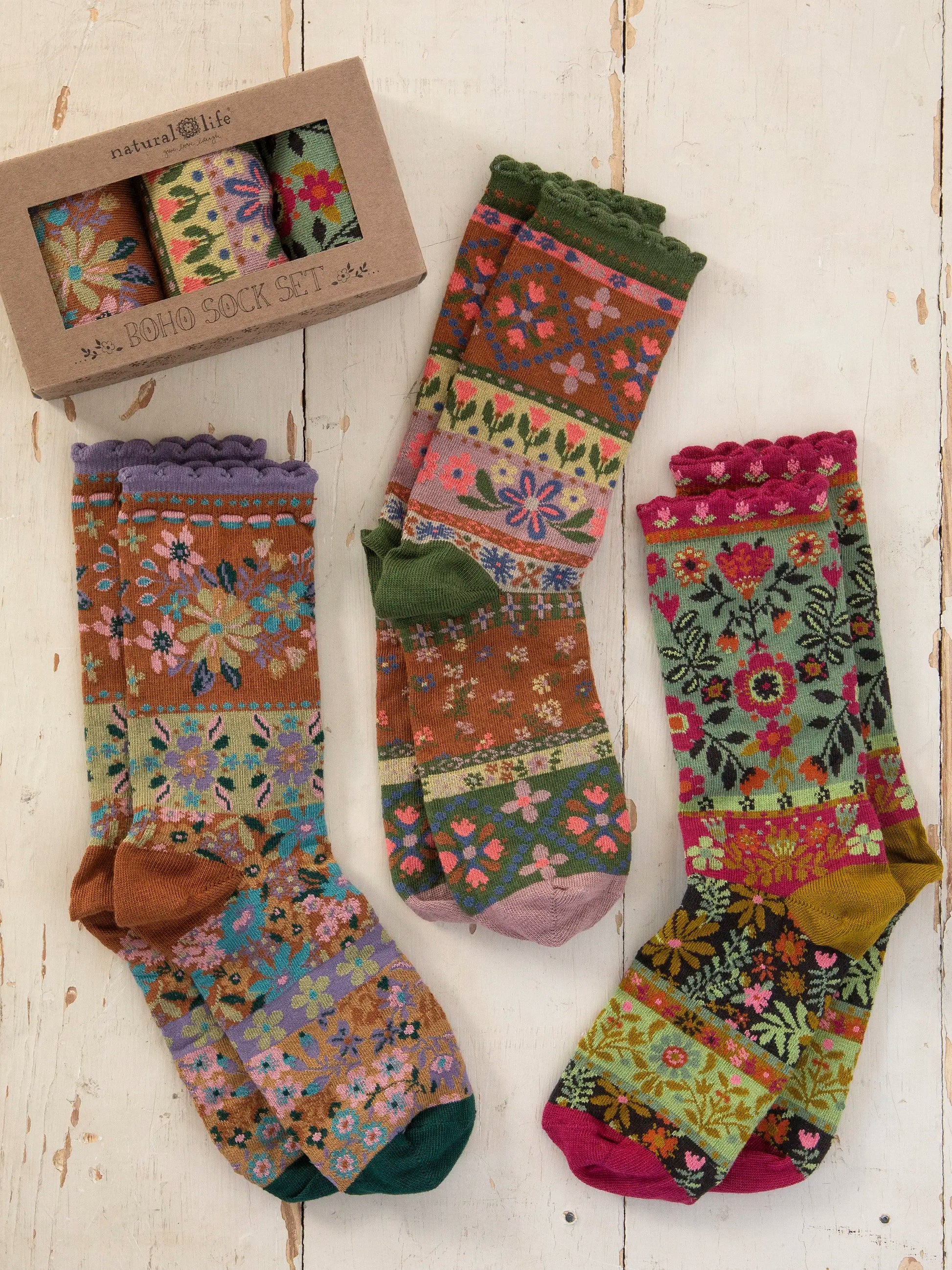 Boxed Boho Sock Set, Set of 3 - Neutral Floral