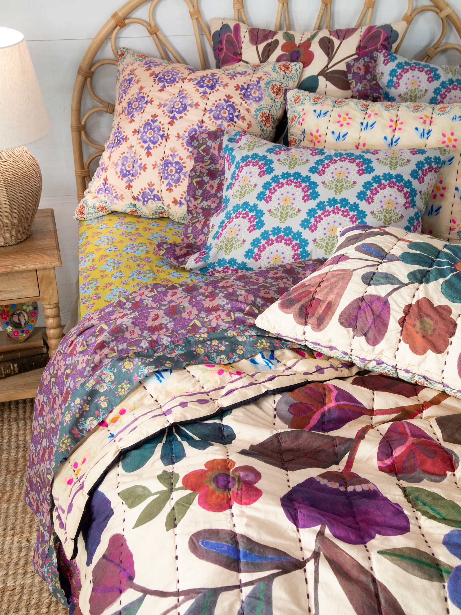 Bungalow Reversible Cotton Quilt - Jewel Garden