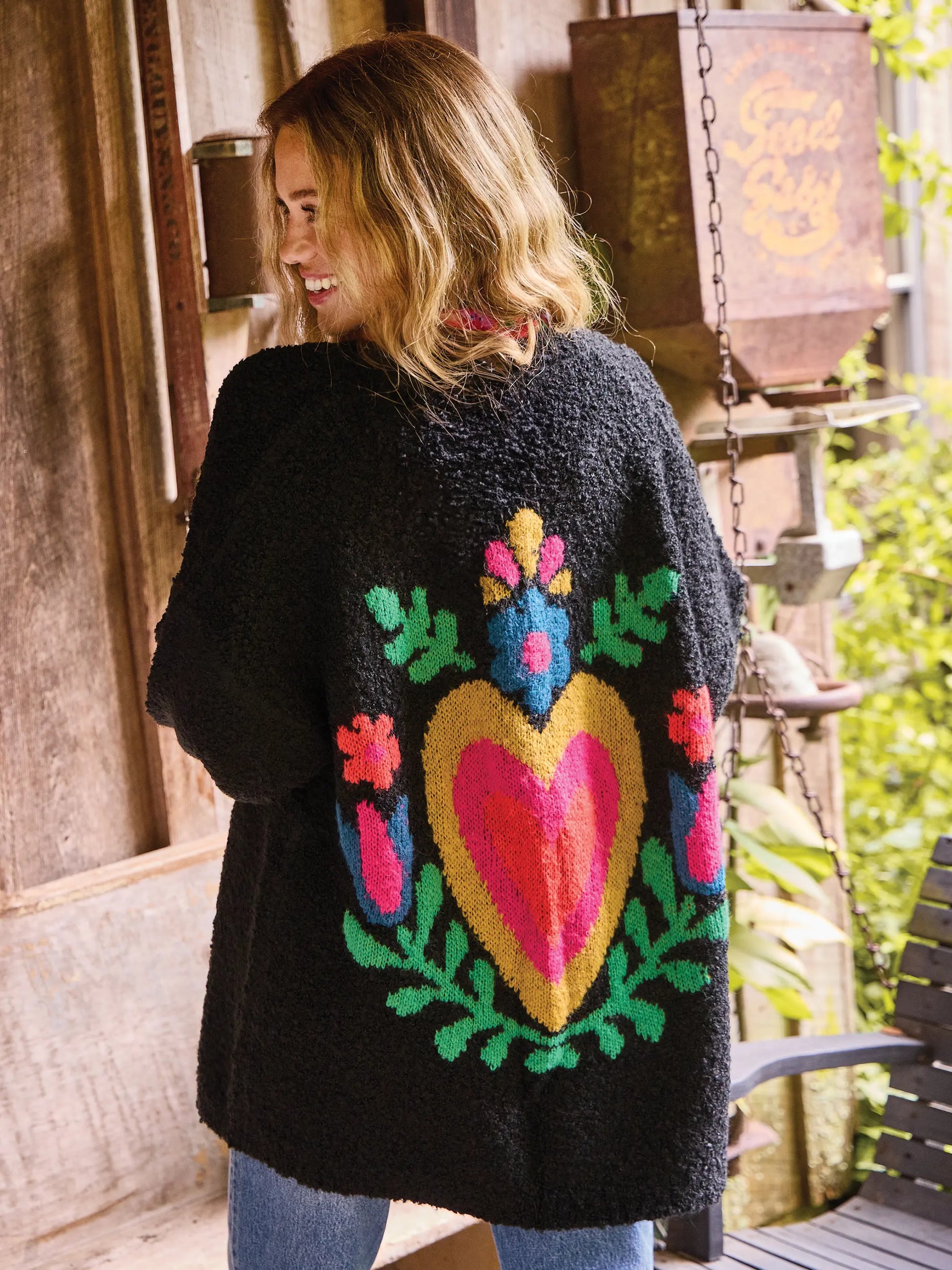 Calla Jacquard Cardigan Sweater - Black Heart