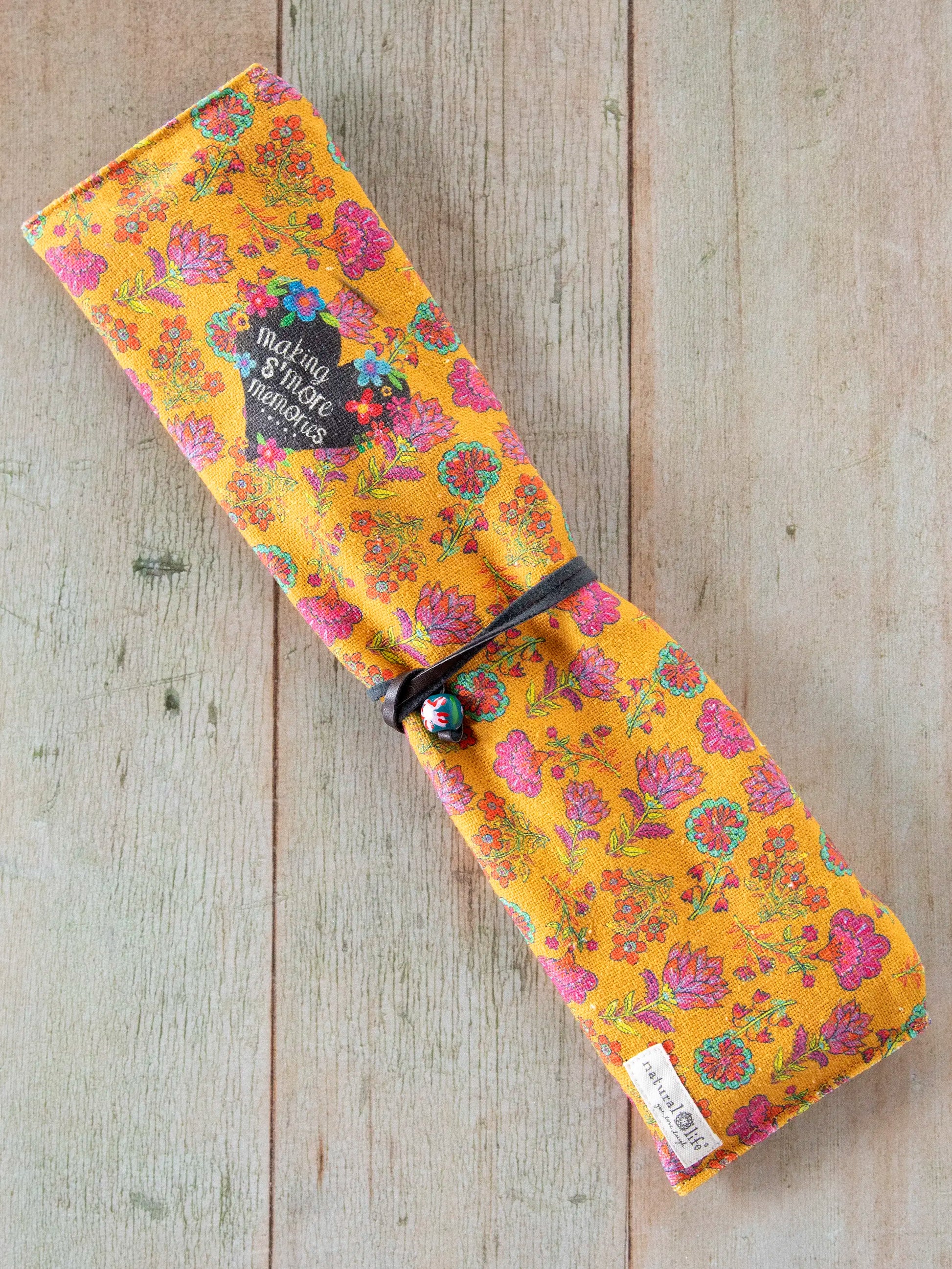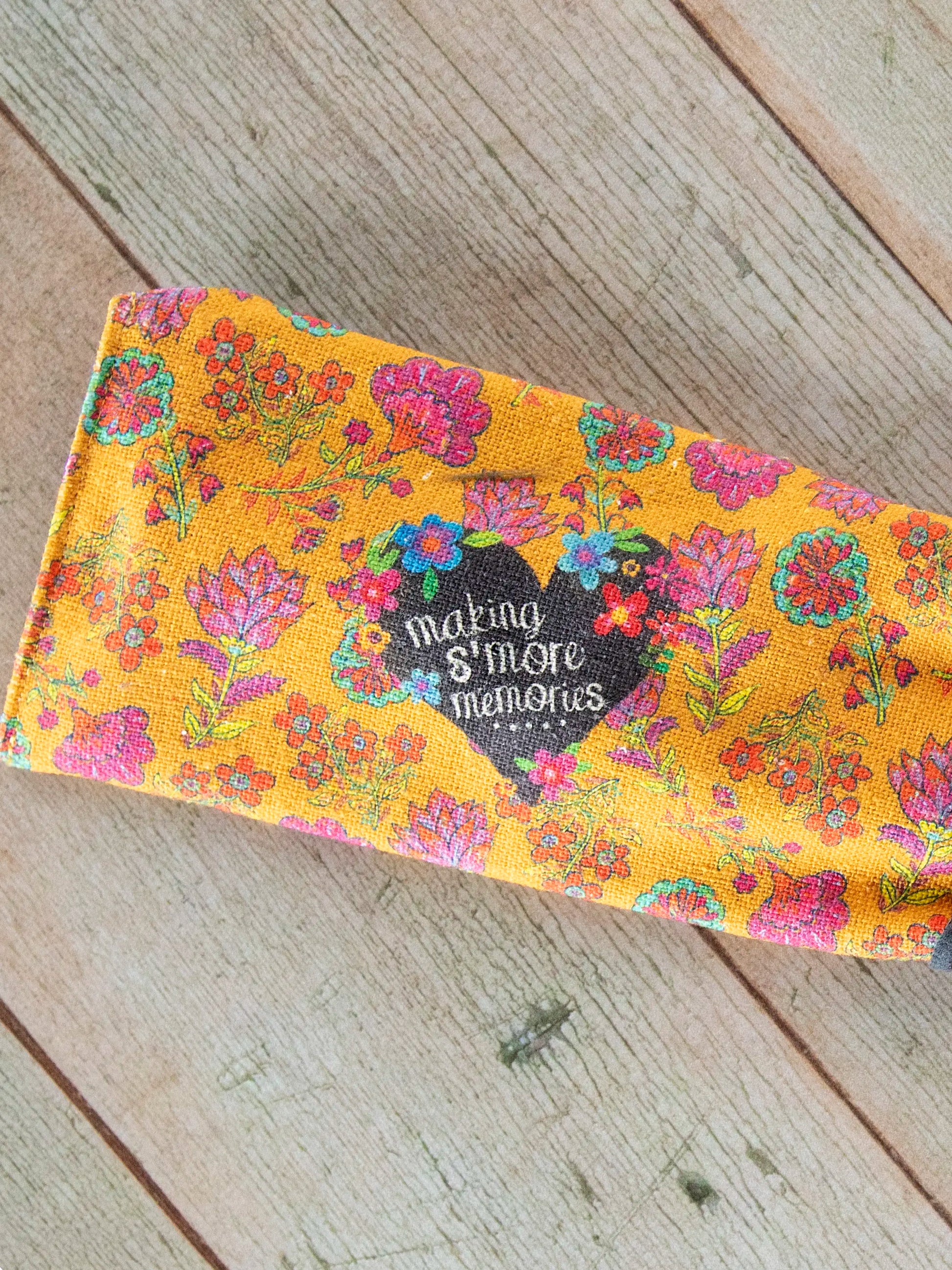 We love S'mores so much we made extendable roasting sticks in the cutest storage bag! LOOK at the saying on the bag!