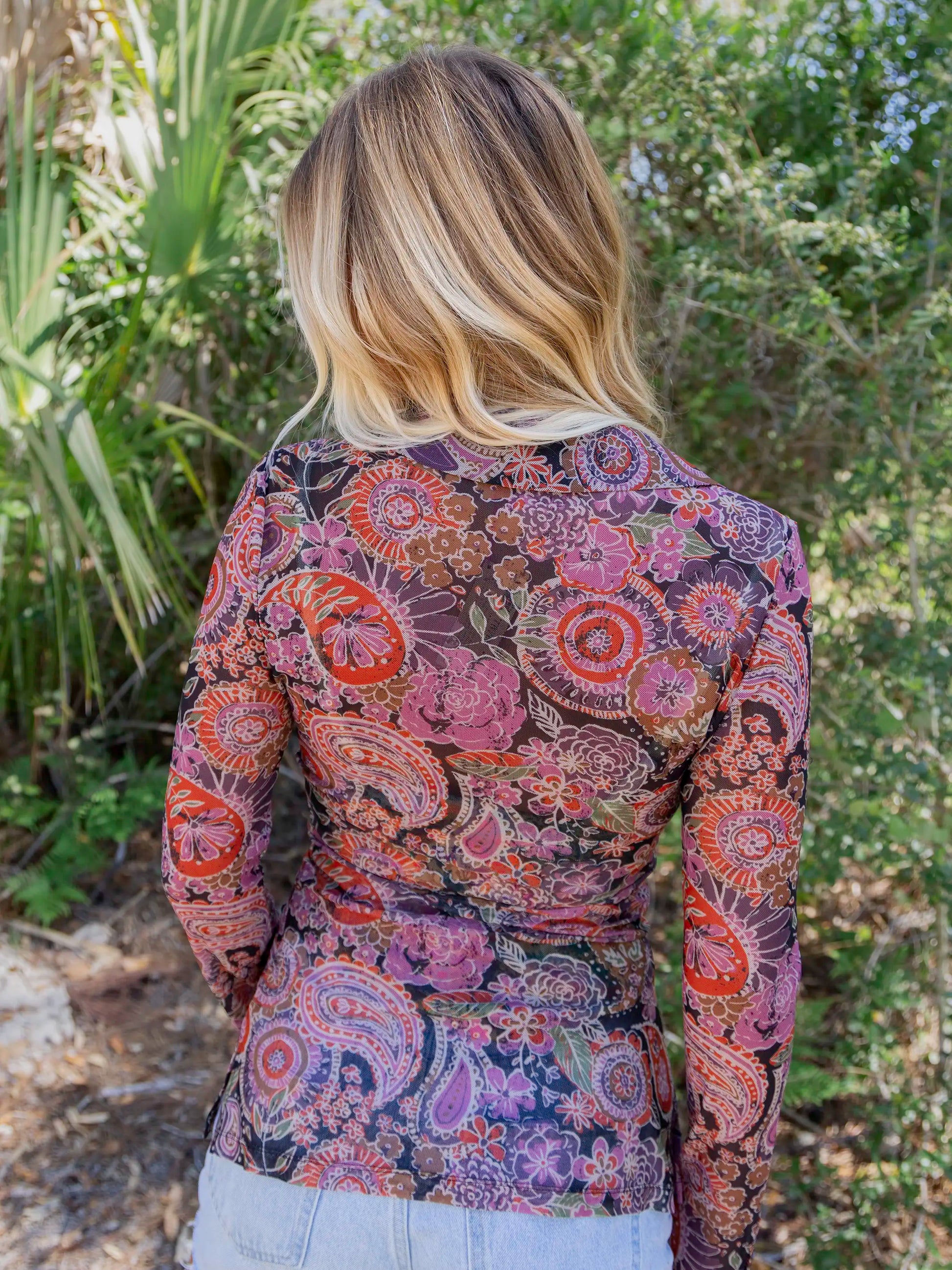 Carina Mesh Top - Black Sketched Paisley