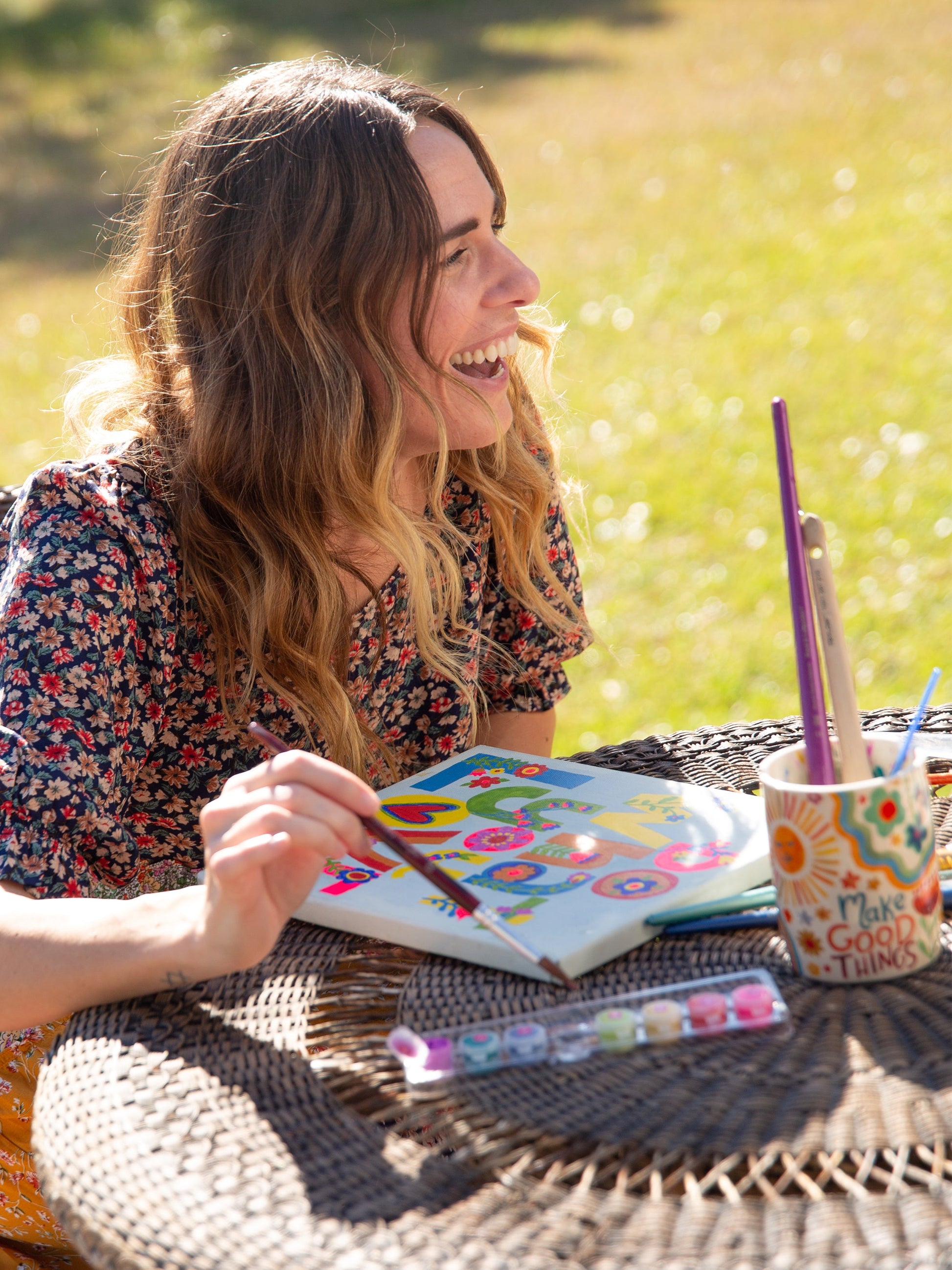 This adorable cup inspires creativity and even has a notch to hold your paintbrush!