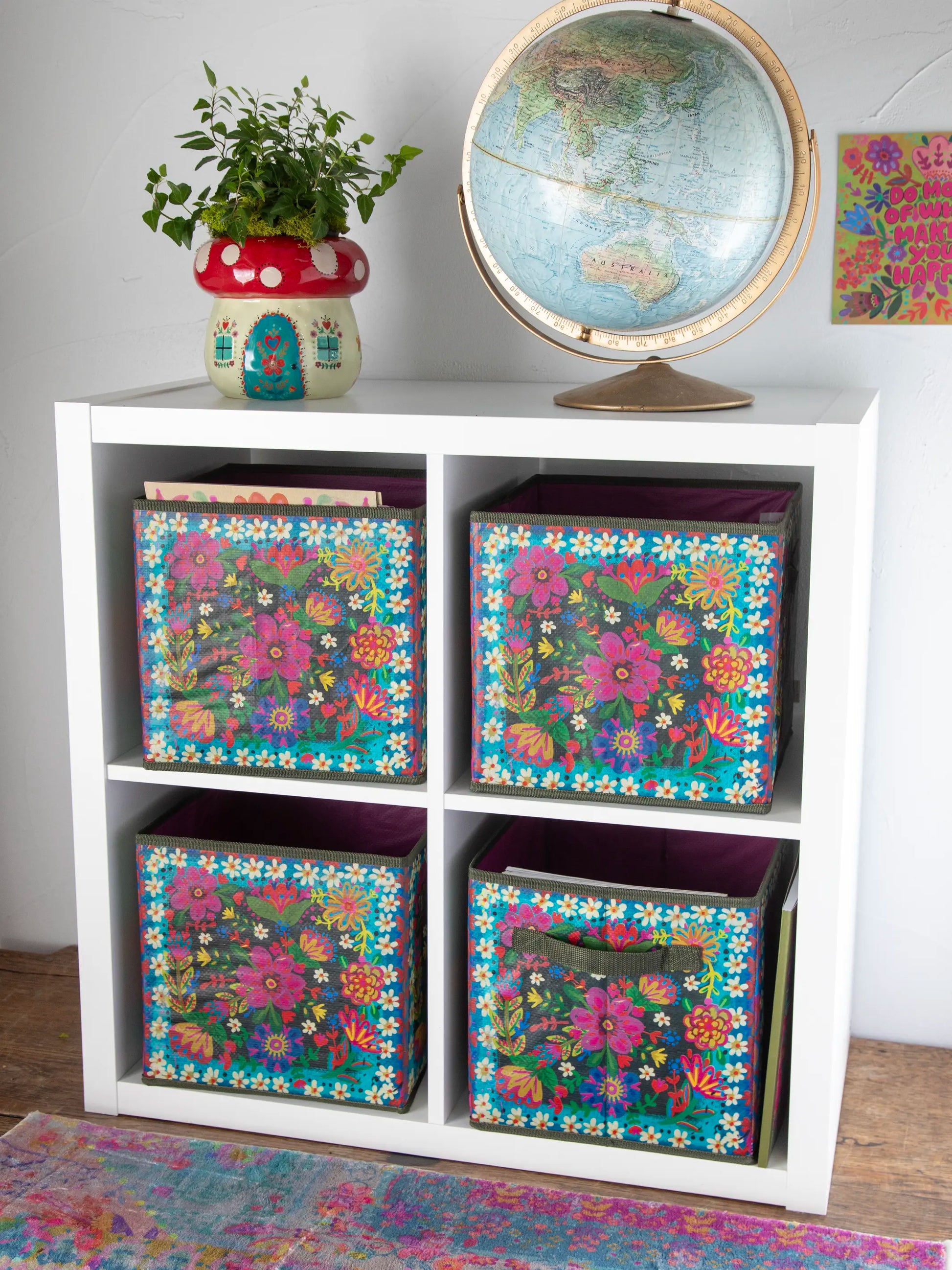 Collapsible Storage Cubes, Set of 2 - Charcoal Borders