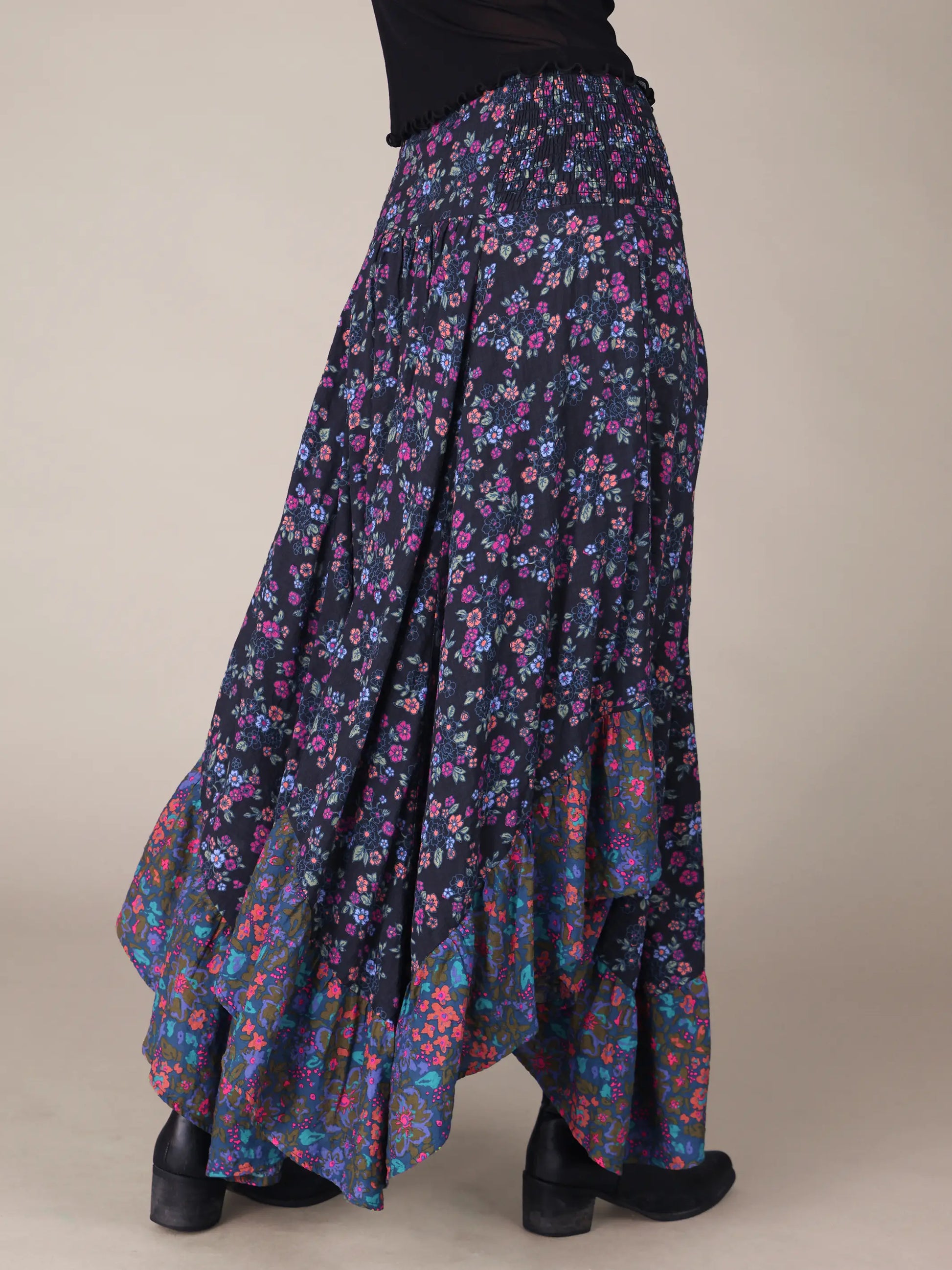 Feelin' Alive Convertible Midi Skirt - Wildflower Ditsy Charcoal