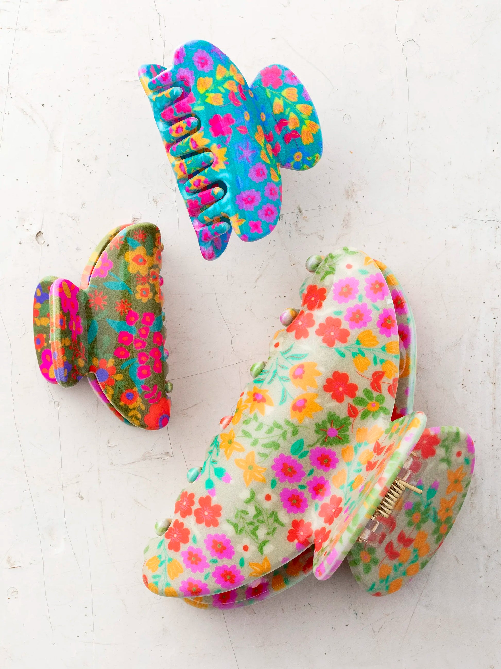 Floral Claw Clips, Set of 3 - Cream Mustard Coral Floral