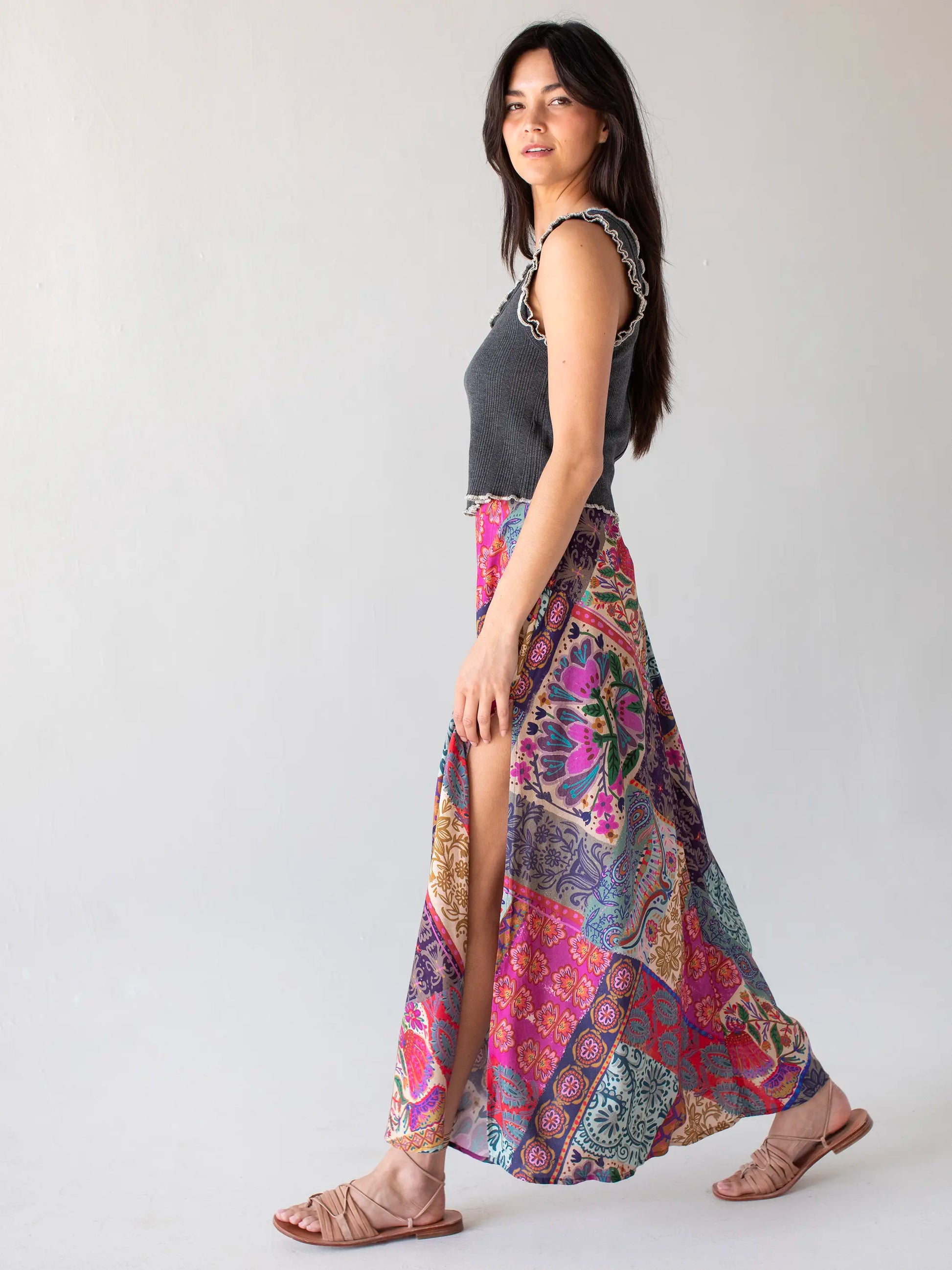 Ginger Side-Slit Maxi Skirt - Boho Blooms Patchwork