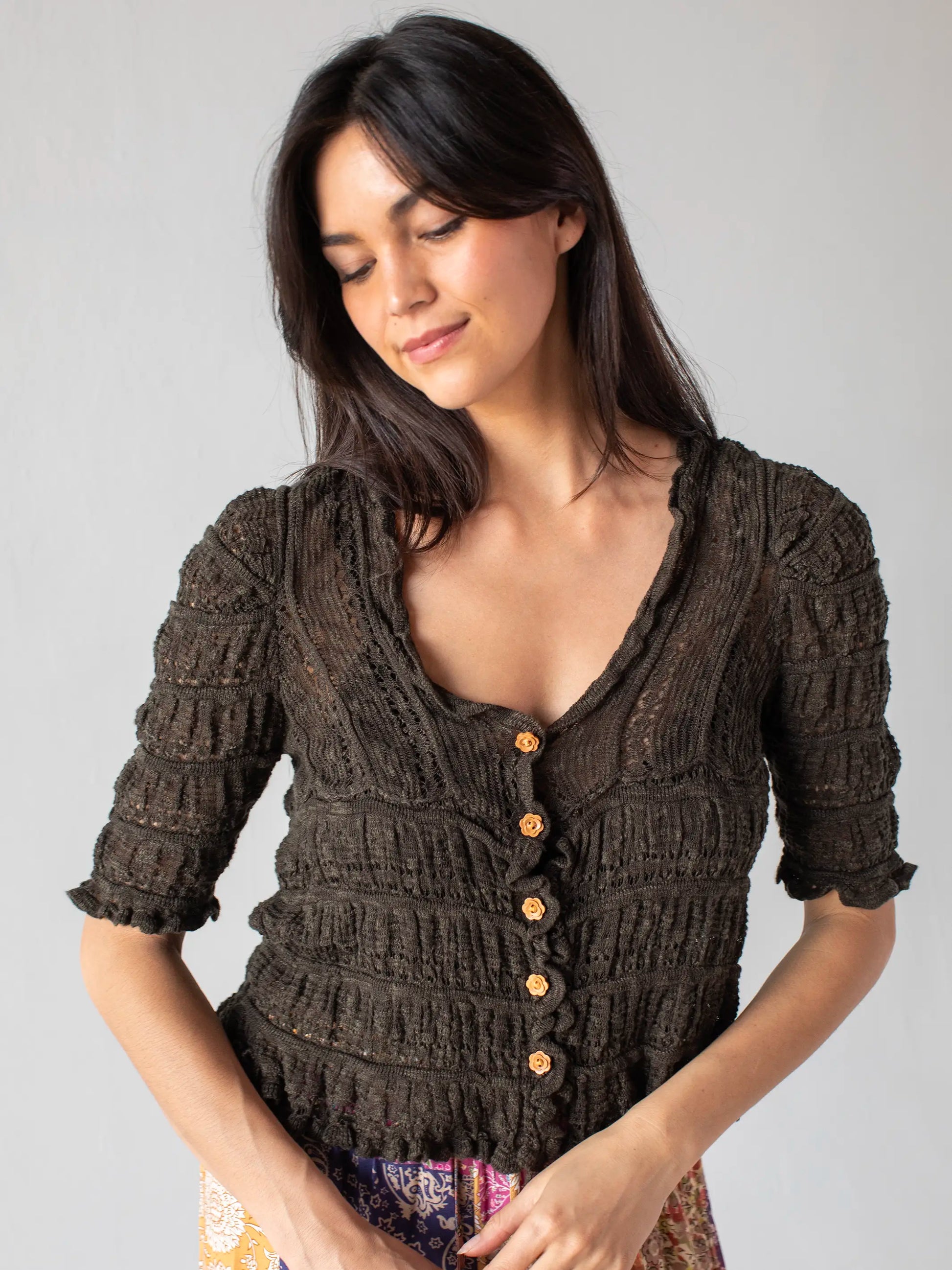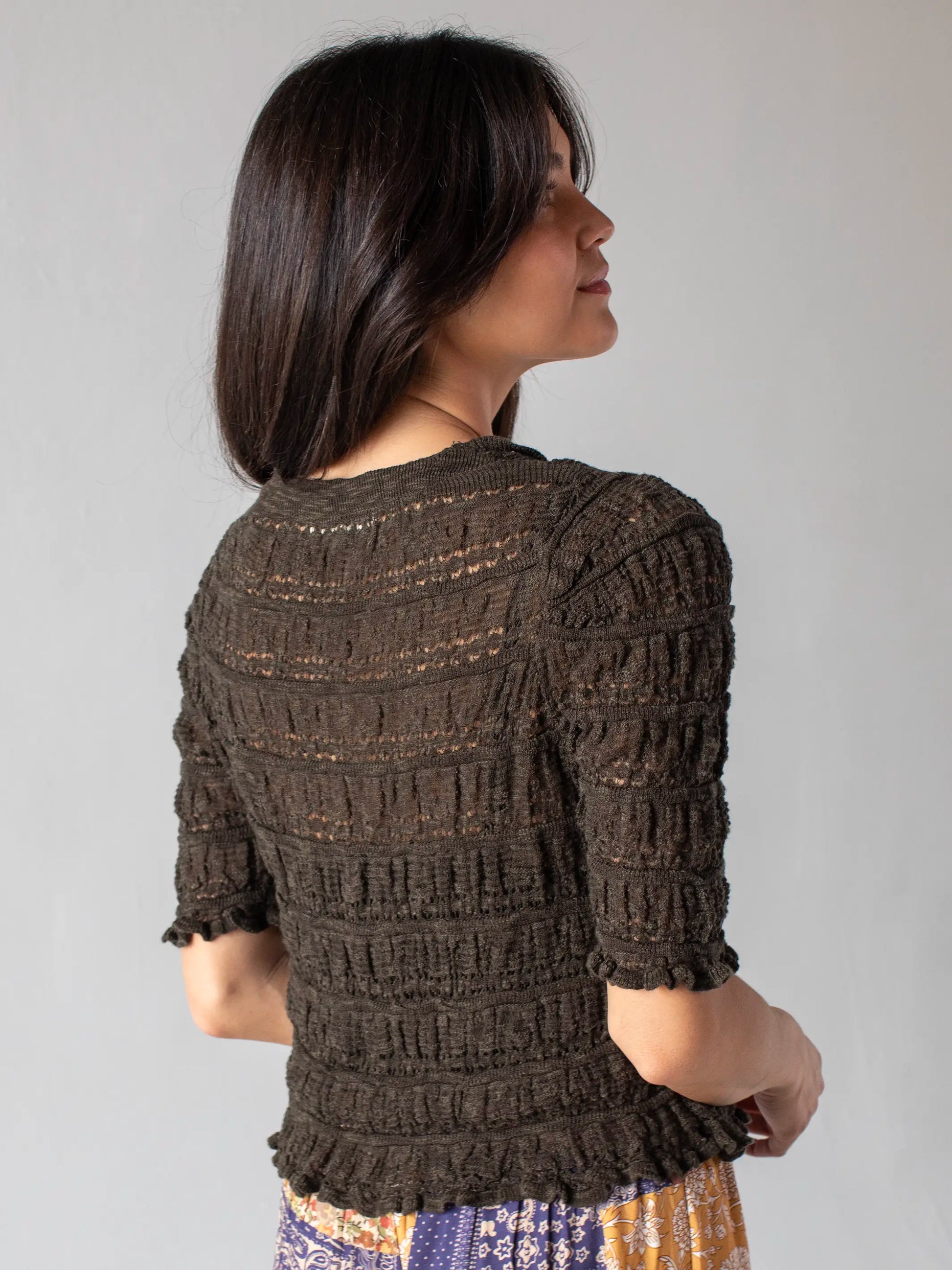 Juliet Short Sleeve Ruffle Sweater Top - Brown