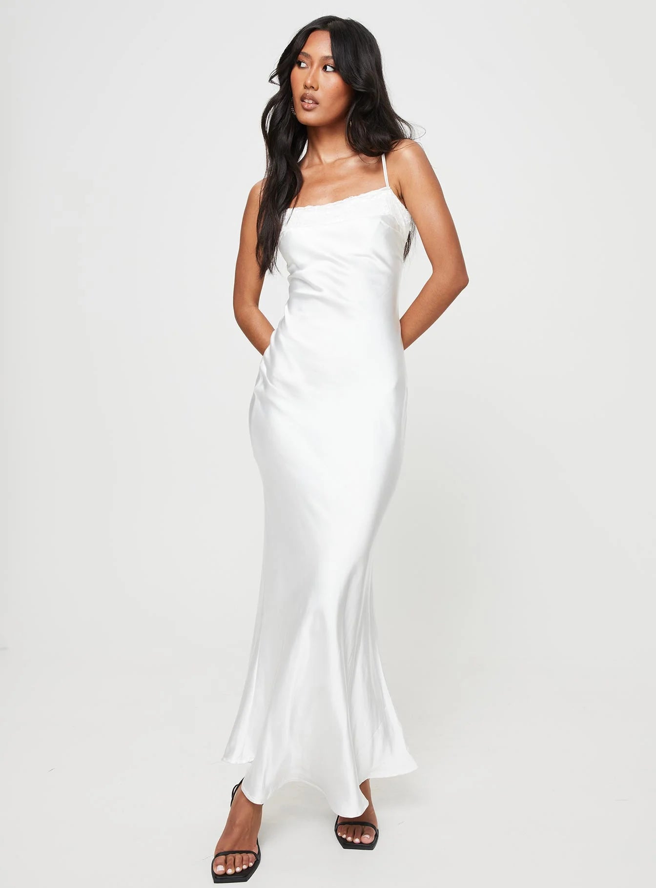 - Silky material. lace detail at bust. adjustable shoulder straps. invisible zip fastening at side