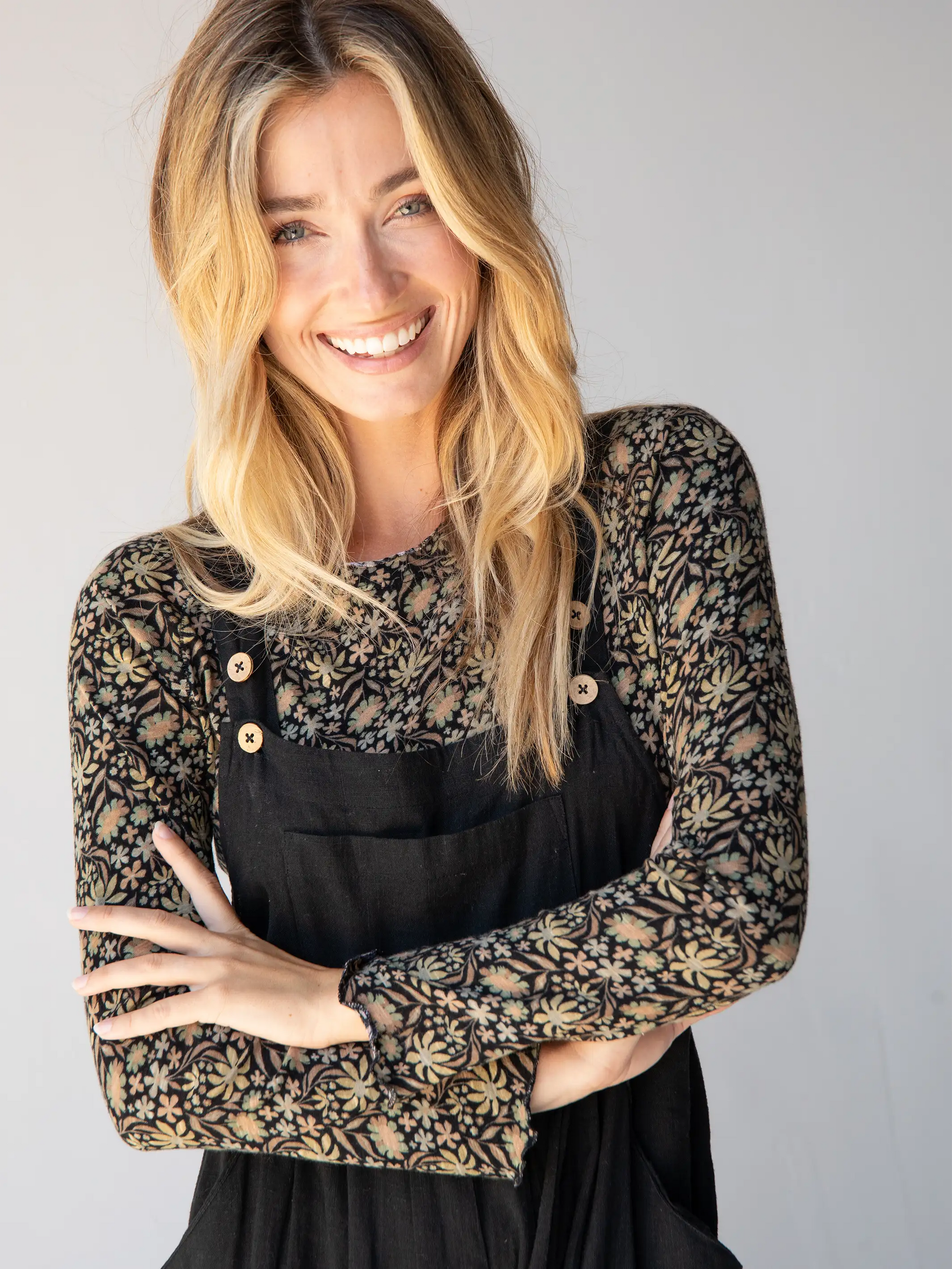 Lily Cotton Long Sleeve Tee Shirt - Tan Daisies Floral