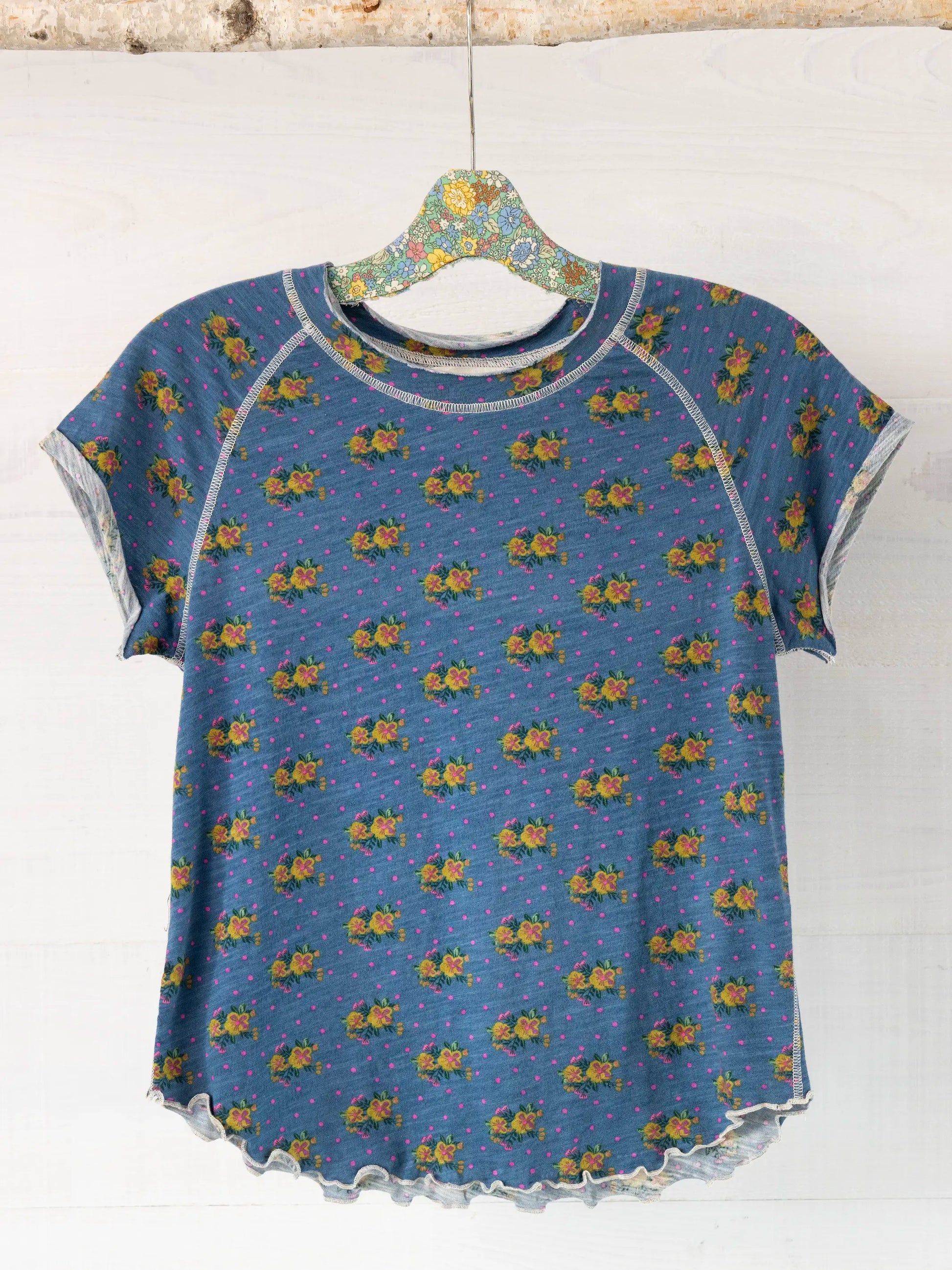 Lily Cotton Short Sleeve Tee Shirt - Blue Polka Dot Floral