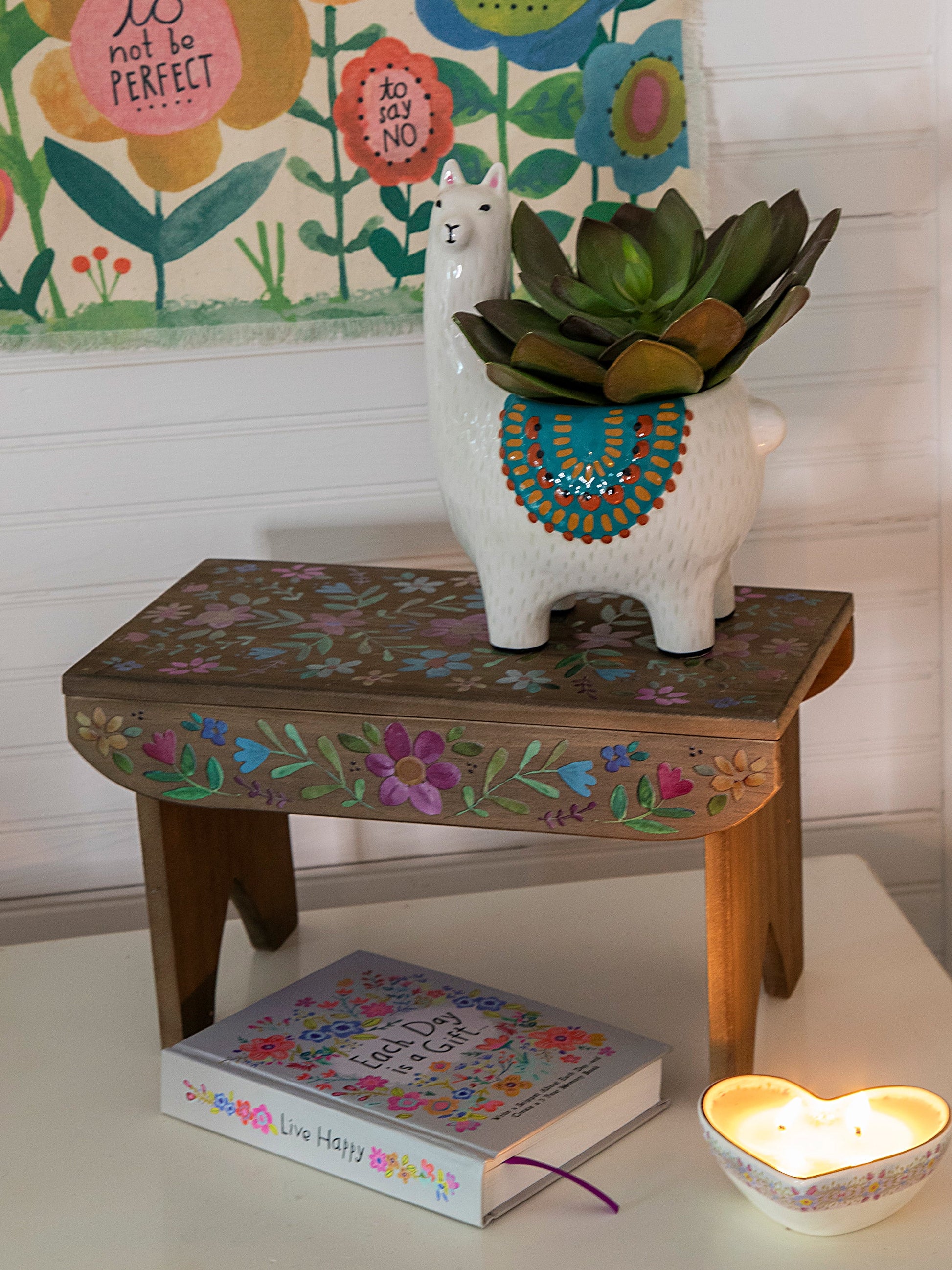Fun to use so many ways in your home! It's a small. elevated spot to keep things like little plants. jewelry or kitchen treasures!