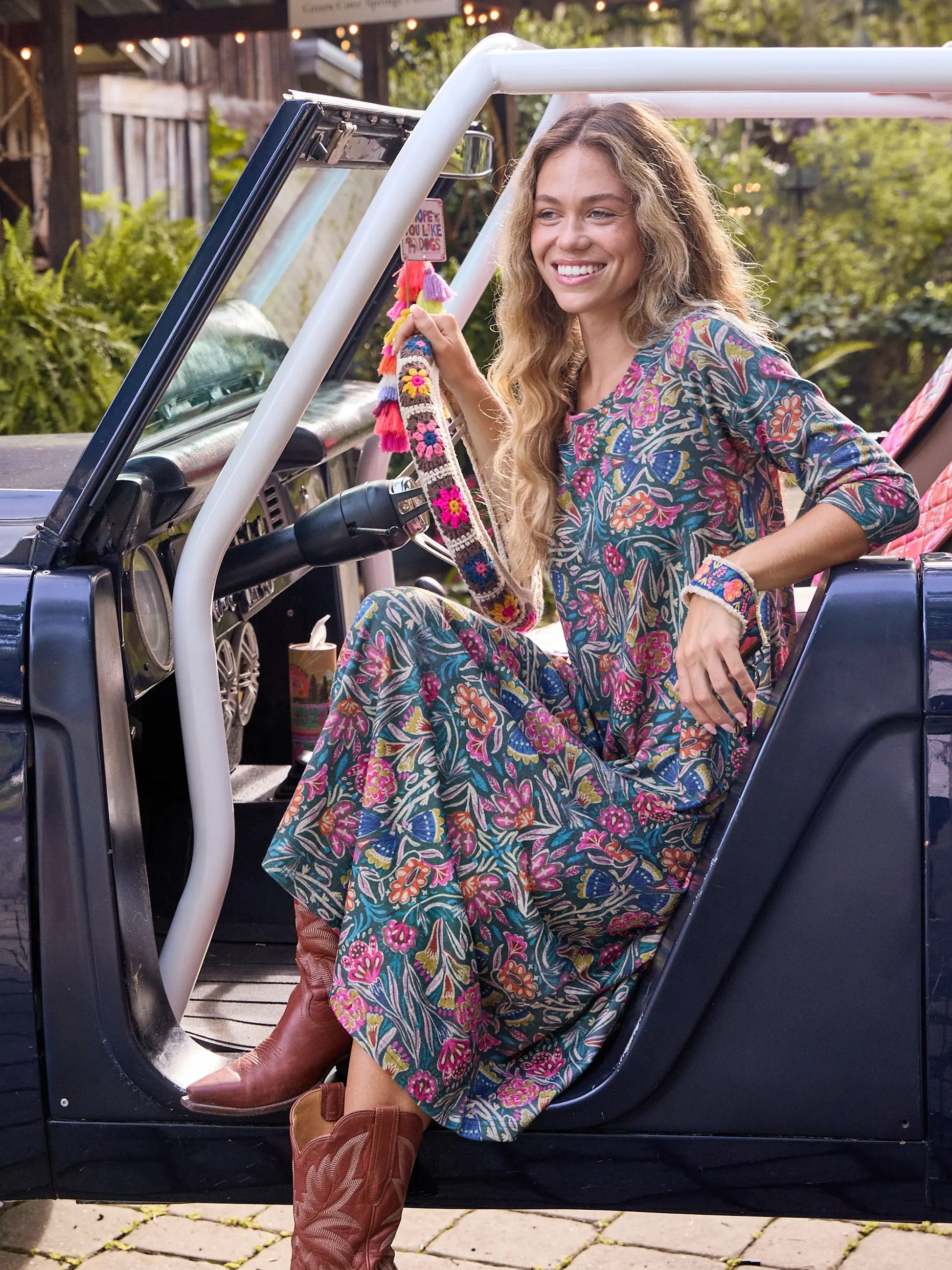 Lottie Sweater Knit Maxi Dress - Green Painterly Vines
