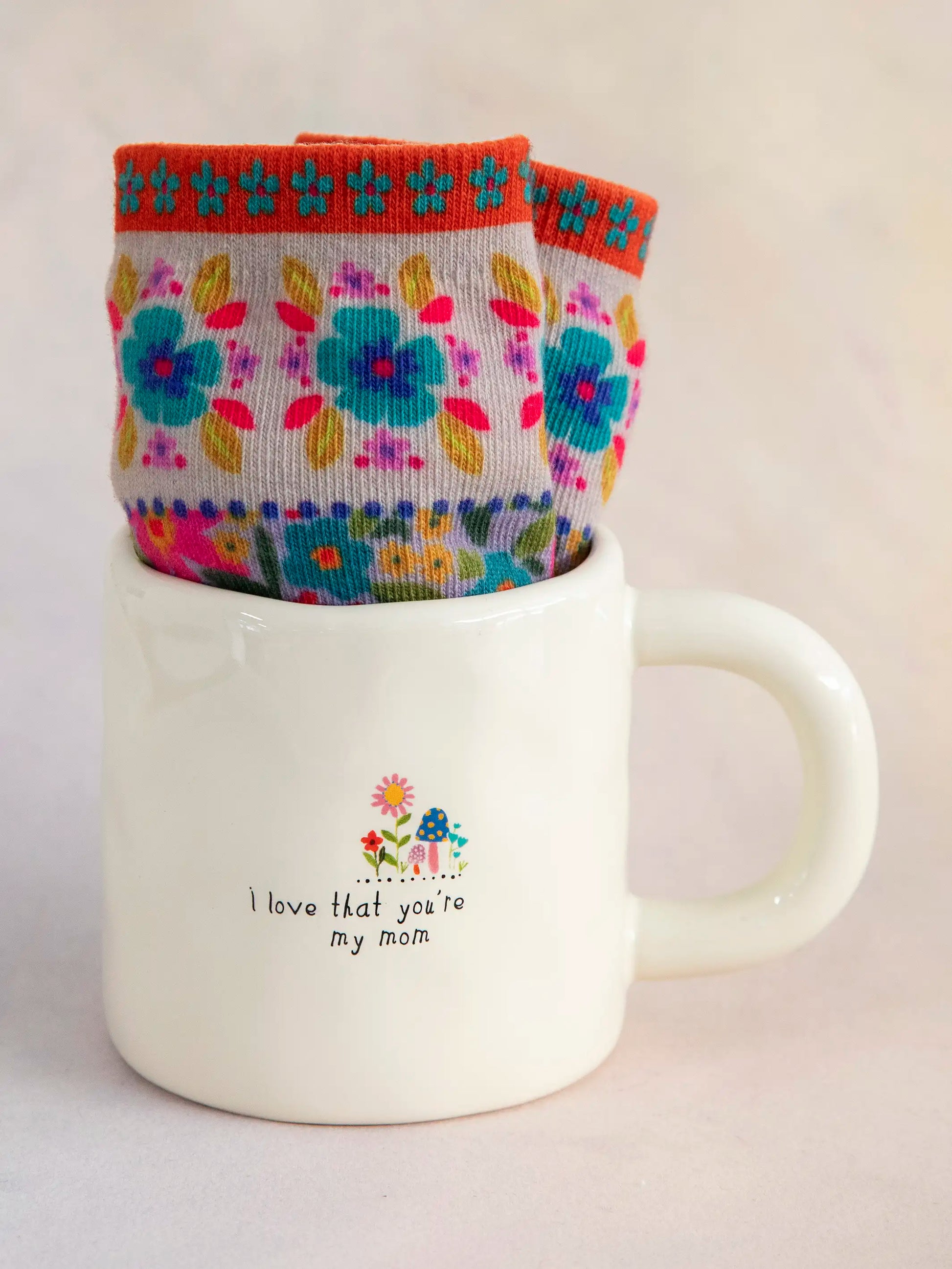 Our 2 favorite gifts in one! Everyone needs a cute new mug and pair of comfy socks!