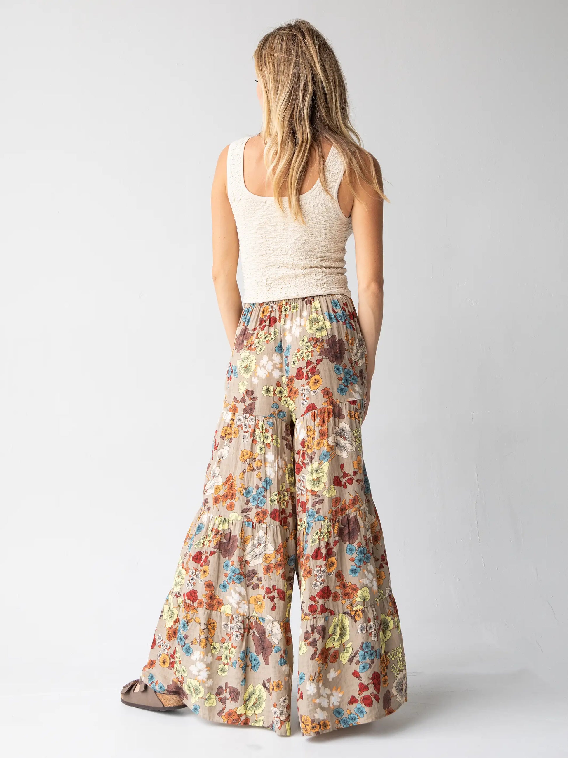 Patti Palazzo Pant - Tan Cream Floral