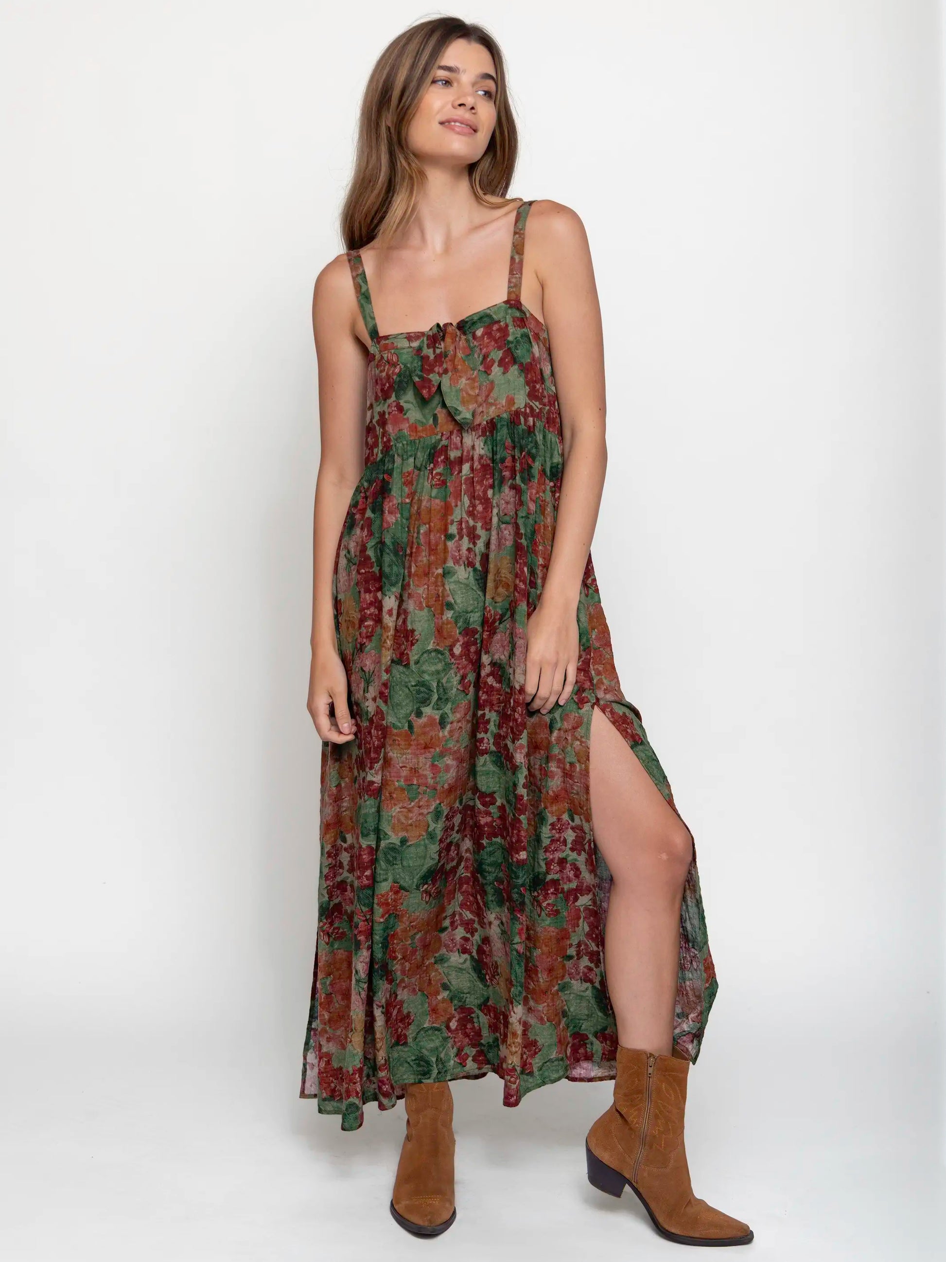 Patti Tie-Front Maxi Dress - Painted Floral Blooms