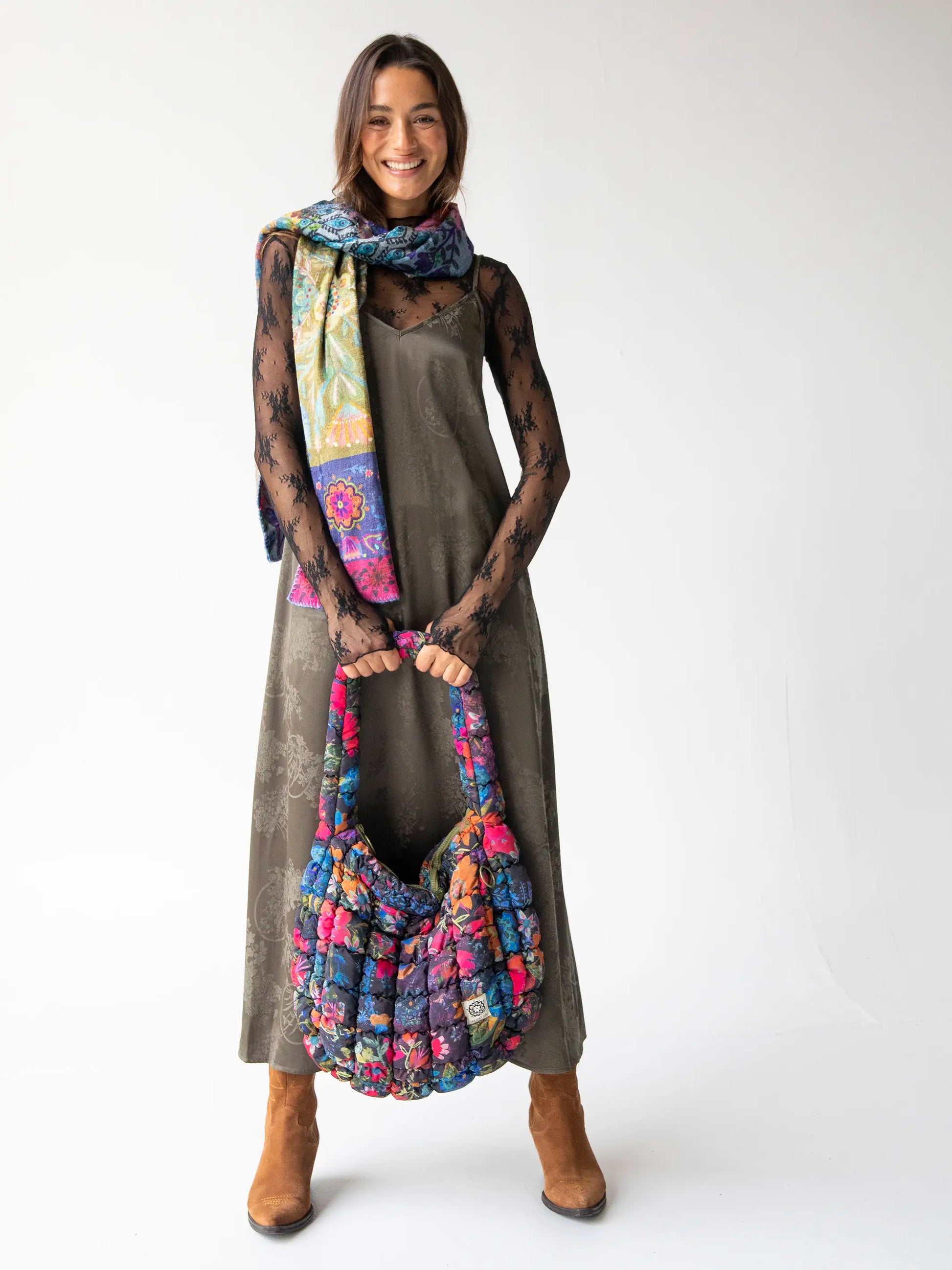 Literally holds EVERYTHING! The perfect everyday bag! Love the soft. puffy fabric!