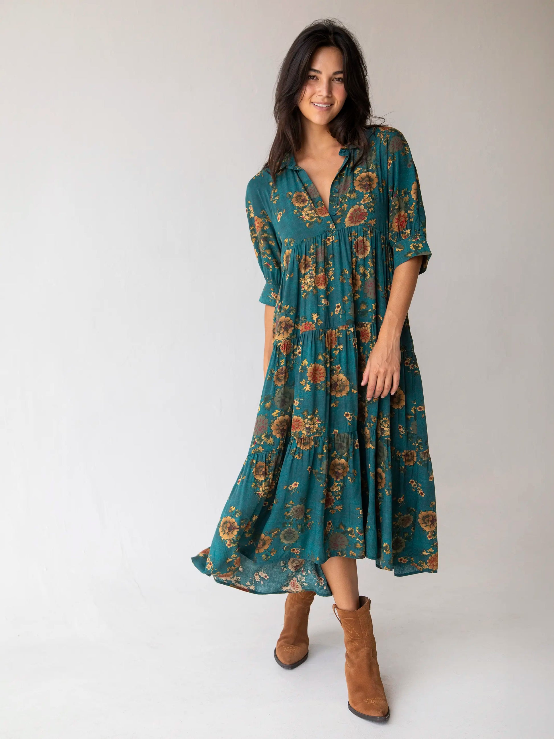 The empire waist & flowy tiers make this dress flattering for EVERY body type!