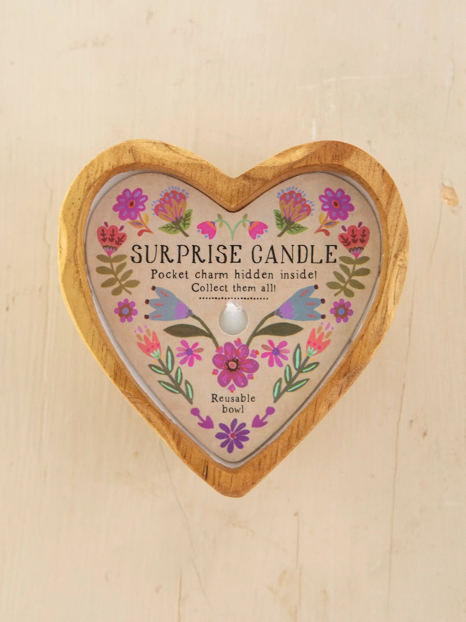 Wooden Heart Surprise Candle - Folk Flower